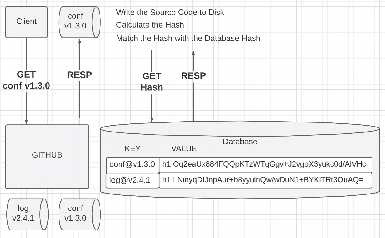 Figure 1 shows a simplified workflow for a system that could provide a way to verify the code we pull is the same as it was in the past. The system consists of a database that can maintain a hash (value) for any repository in a VCS at some tag (key). We could build a client tool that can pull the code from the VCS, hash the code on disk, query the database for the hash value, and compare the two hashes to make sure they are the same. If the key doesn’t exist, then the system could reach out to the VCS directly, append a new record, and return the hash.