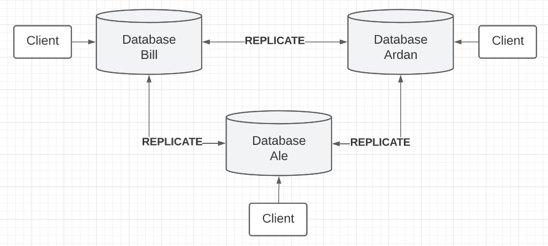 Which one is right? Technically they both are but that doesn’t help users. The need is to have redundancy where anyone could talk to either database and get the same result.